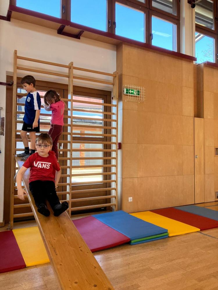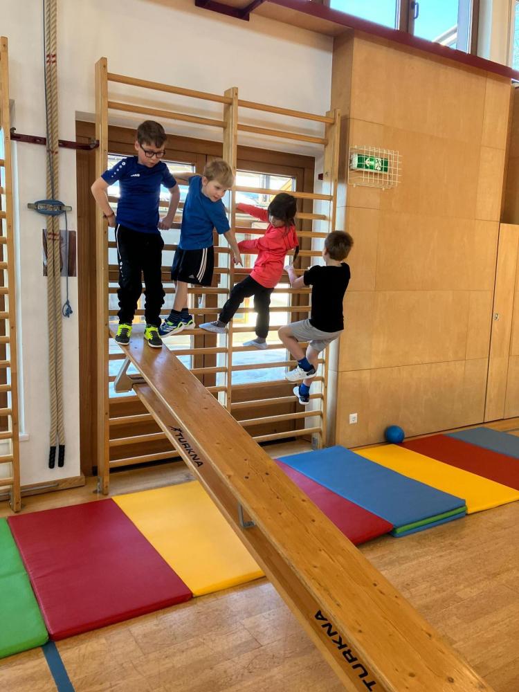Am Mittwoch, den 21.01.2026, verbrachten die Kinder der 1a gemeinsam mit dem Waldkindergarten eine Doppelstunde im Turnsaal. Dort wartete ein abwechslungsreicher Geräteparcours auf die Kinder, der mit viel Bewegung, Freude und Begeisterung ausprobiert wurde. Spielerisch wurden dabei Geschicklichkeit, Gleichgewicht und Mut gefördert, und das gemeinsame Turnen machte allen sichtlich Spaß.
