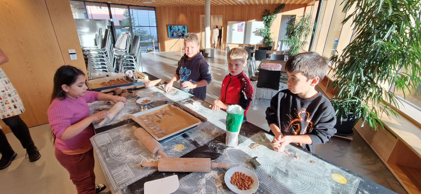 Zur Adventzeit ist das Backen von Keksen und Lebkuchen wohl einer der schönsten Bräuche. Am Donnerstag, 11. Dezember, legten darum auch die Kinder unserer zweiten Klassen "Hand an den Teig", rollten ihn aus und stachen weihnachtliche Figuren aus.