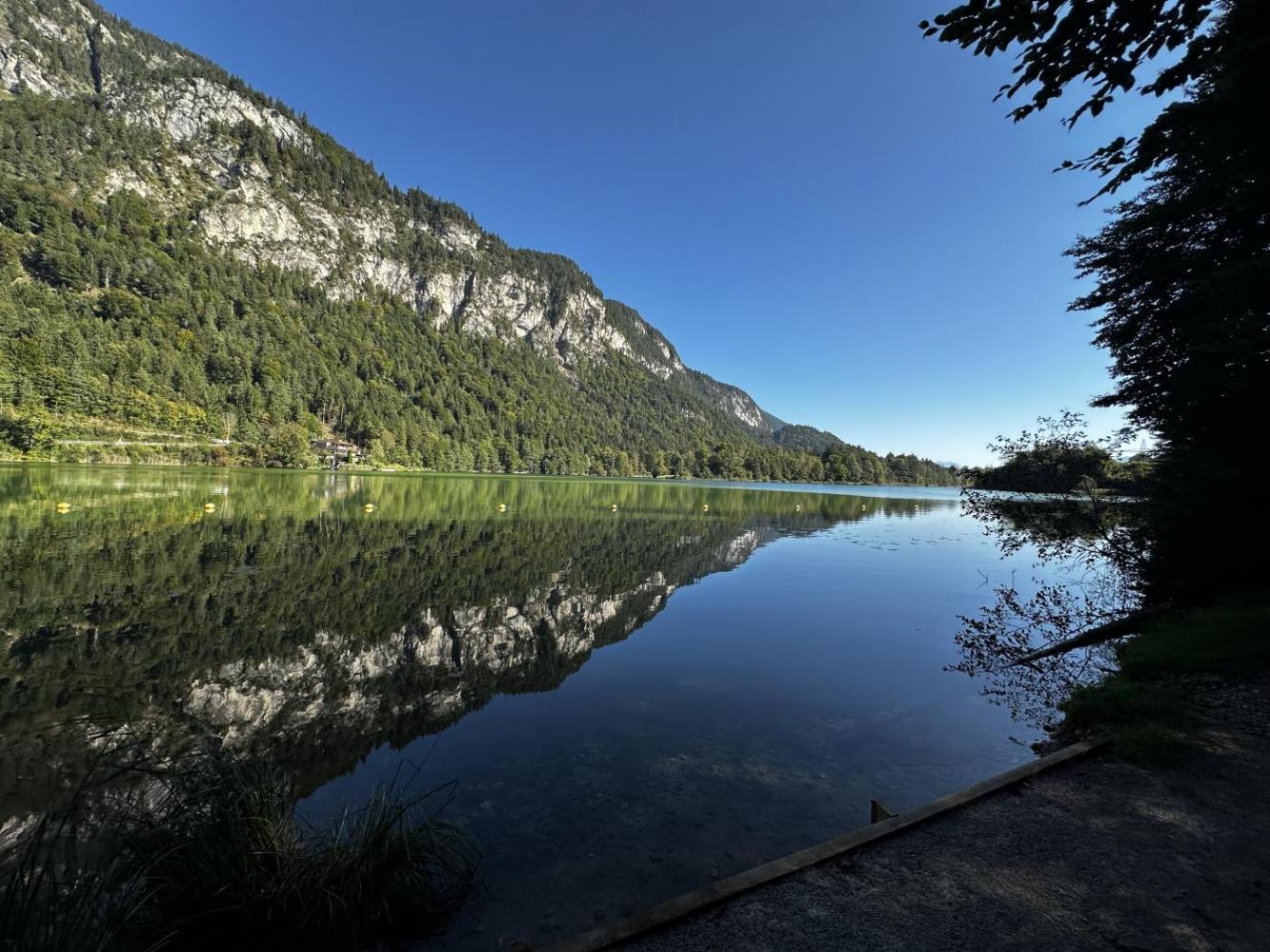 Gut gelaunt wanderten wir um die andere Hälfte des Sees und freuten uns über die tollen Ausblicke auf das Wasser und die Berge.