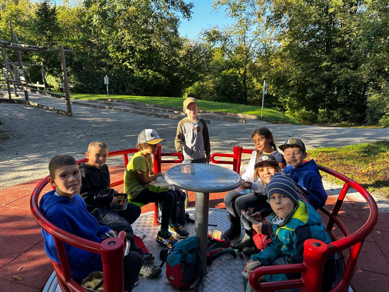 Danach machten wir Halt, stärkten uns und hatten anschließend viel Spaß am Spielplatz, wo wir klettern, schaukeln und miteinander spielen konnten.